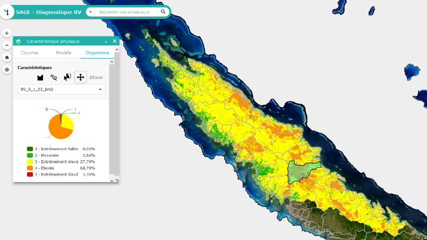 Outil d'analyse multicritère développé avec le Suitability Modeler et Model Builder pour diagnostiquer la santé des bassins versants et prioriser les interventions sur le réseau hydrologique de la Province Nord.