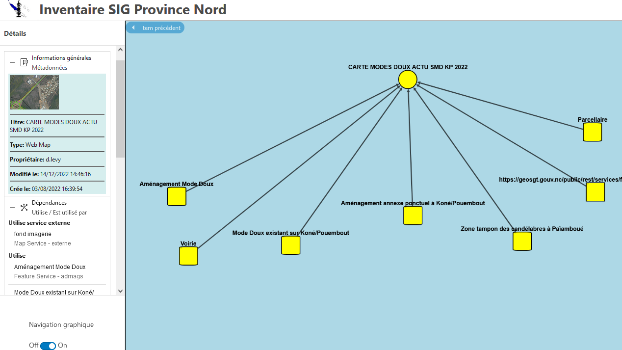 Solution JavaScript et Python d'inventaire et de visualisation des dépendances entre les 16 964 items du portail ArcGIS provincial, avec tableau de bord de supervision des tâches planifiées.
